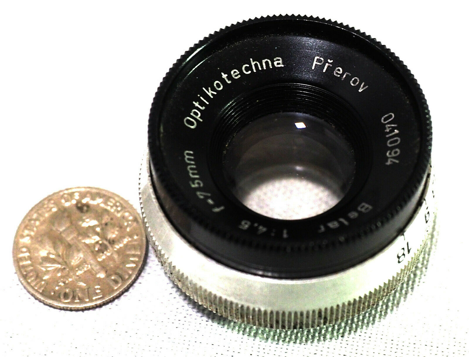 This is the same as the Meopta Belar 75mm f/4.5 enlarger lens except that the name Optikotechna was changed to Meopta in 1946. This makes my lens sometime pre-1946.